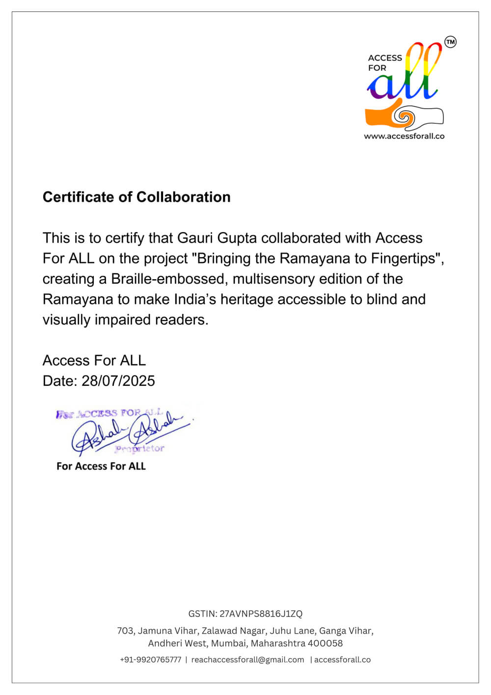 Bringing the Ramayana to Fingertips: A Braille Book with Tactile Images by Gauri Gupta for Read To India